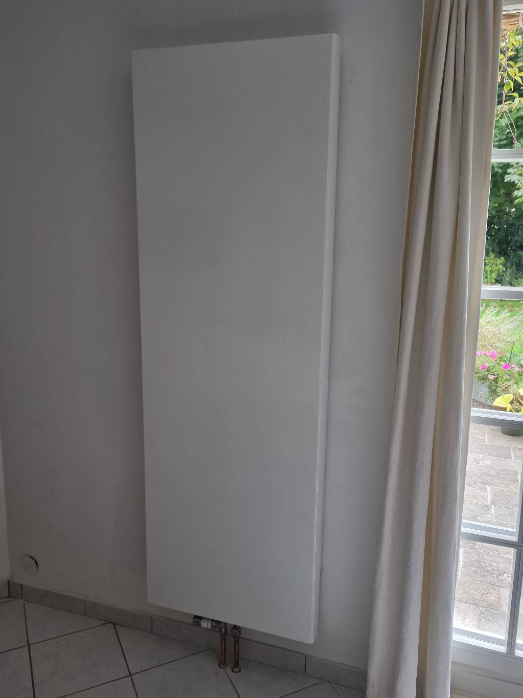 Nous avons également remplacé l'ensemble des radiateurs et procédé au rajout de deux radiateurs au niveau de l'agrandissement. L'ensemble des radiateurs est équipé de robinets simples ou de robinets thermostatiques OVENTROP.