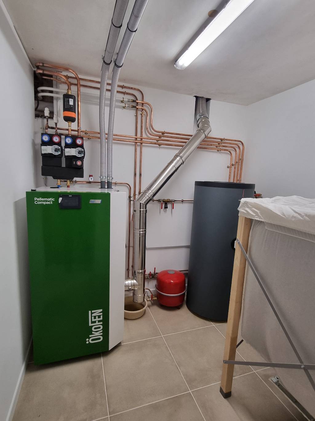 Le client a tout d'abord réalisé une pièce spécifique pour recevoir la chaudière à granulés ainsi que ses périphériques.