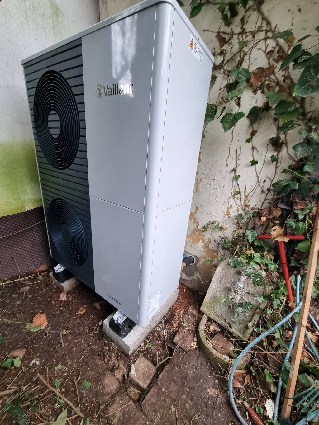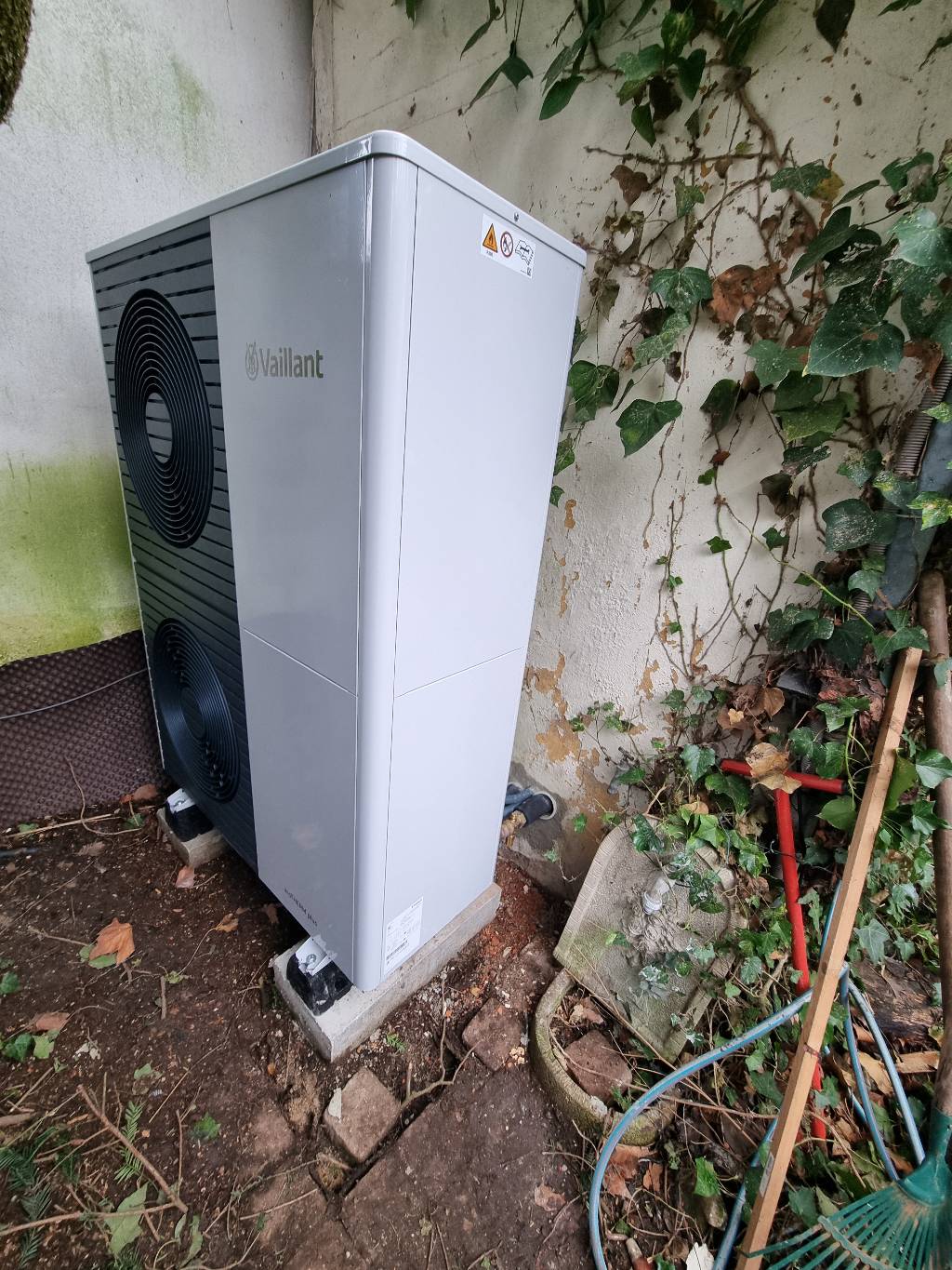 Nous avons donc installé une pompe à chaleur VAILLANT aroTHERM PLUS 125 couplée à une chaudière gaz VAILLANT écoCOMPACT assurant également la production d'eau chaude sanitaire.
