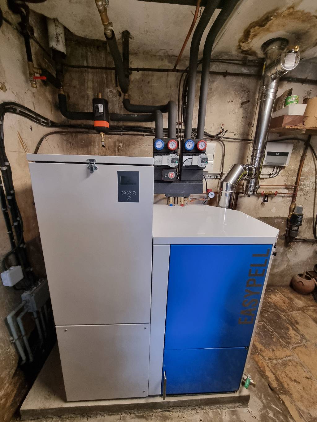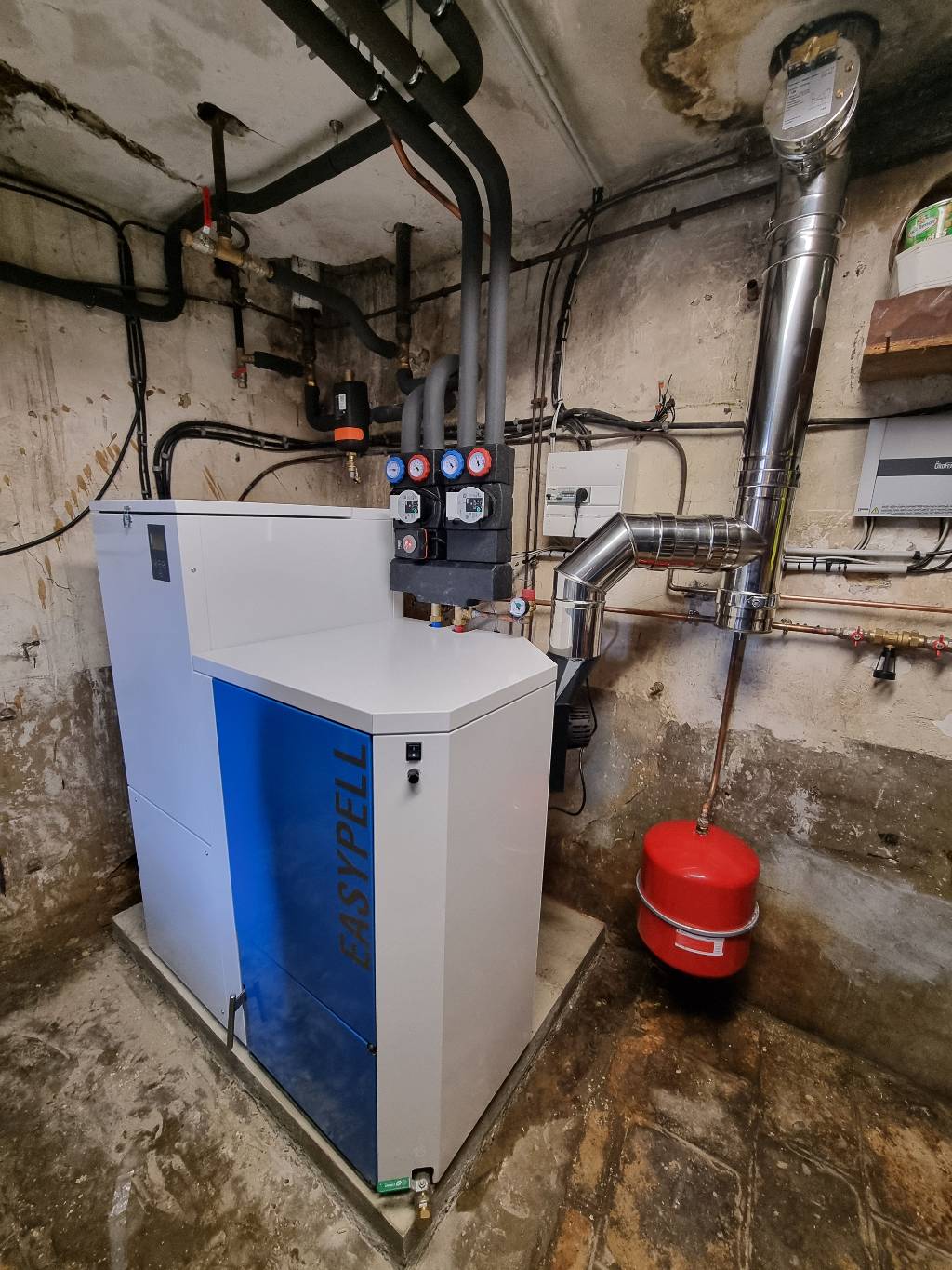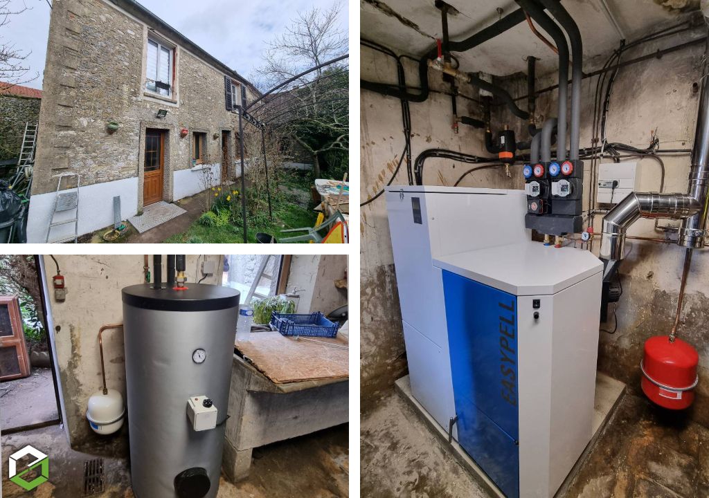 Après avoir réalisé une étude thermique, nous avons proposé à notre client de remplacer sa très ancienne chaudière fioul par une chaudière à granulés de bois ÖKOFEN EASYPELL à chargement manuel..